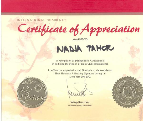 Članica našega kluba je prejela priznanje za večletna prizadevanja za zbliževanje in sodelovanje Lions klubov ob meji ter za delovanje v Prvem italijansko-slovenskem odboru Lions klubov dveh con.