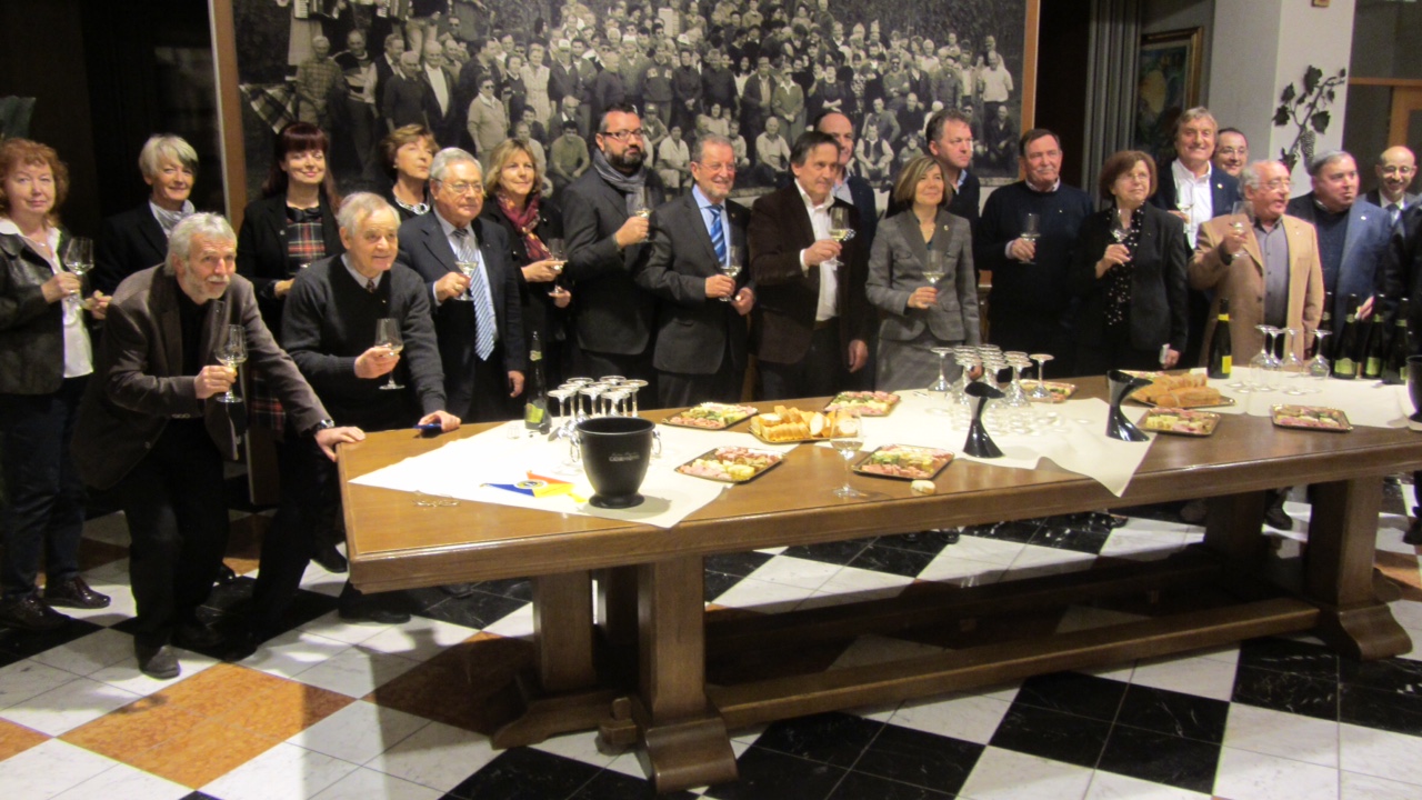 Skupaj s člani pobratenega kluba Gradisca Cormons smo obiskali Cantino Sociale di Cormons. Sprejela sta nas predsednik konzorcija Stefano Gregorat in direktor kleti Rodolfo Rizzi. Po uvodnem pozdravu nas je direktor vodil po kleti. Po ogledu smo se zbrali v dvorani, kjer so prisotne pozdravili gostitelji in oba predsednika klubov, Gerardo Cavallo in Albin Jasnič. Direktor kleti je predstavil idejo Vina miru, ki letos obeležuje 30 let. Okrog kleti so nasadili 550 trt z različnih koncev sveta, iz tega pridelka pridelajo Vino miru, ki ga vsako leto pošljejo vsem državnikom sveta kot novoletno darilo.