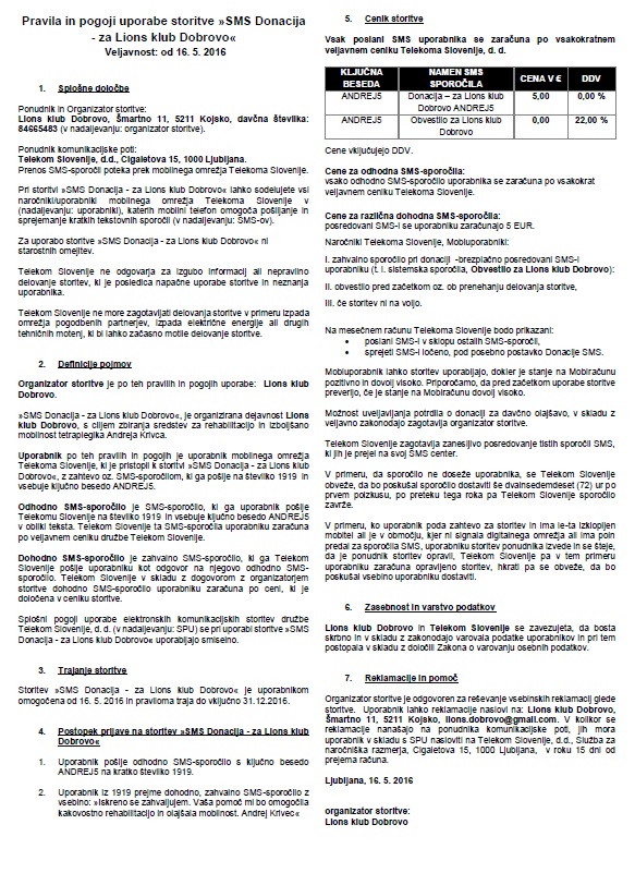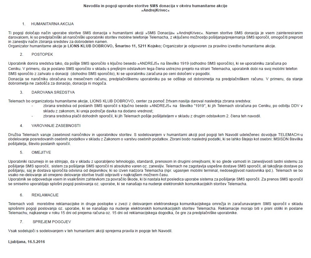 Akcijo so podprle družbe: Telekom, Telemach, IZI mobil, Simobil, Debitel komunikacije. Vse družbe se v celoti odpovedujejo prihodkom iz naslova odhodnih/dohodnih SMS sporočil.