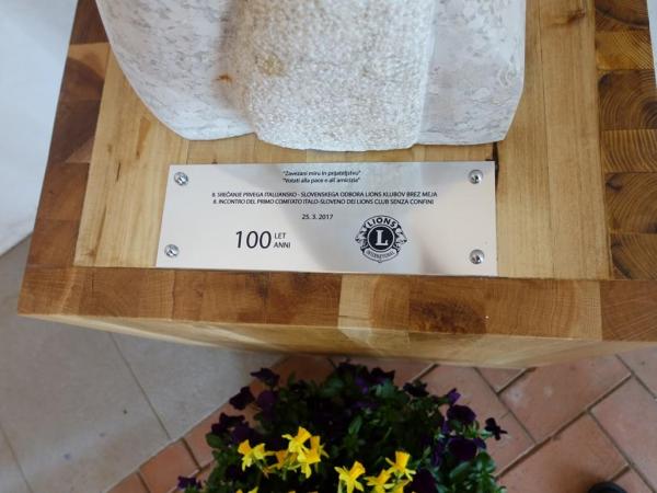 Srečanje smo v prelepem sončnem vremenu pričeli na Svetem križu v Kojskem. Vodiča Miloš in Peter sta predstavila bogastvo cerkvice, ki na zunaj deluje tako majhna in skromna, v notranjosti pa skriva čudovit gotski oltar. Druženje smo nadaljevali na dvorišču gradu Dobrovo. Na terasi gradu smo s kratko slovesnostjo odkrili spominsko obeležje posvečeno temu dogodku ter v počastitev 100-delovanja lionizma v svetu. Kamen za obeležje je podaril Venko Černic iz Lions kluba Gorizia Host. Obeležje, ki sta oblikovali mladi kiparki Andreja Pegan in Polona Terčon, prikazuje preplet dveh oljkinih debel. Oljka, v preteklosti razširjena v Goriških Brdih, zaradi velike pozebe izkoreninjena in v zadnjem obdobju ponovno zasajena, simbolizira mir, trdoživost in vpetost v svoje okolje. Preplet debel simbolizira povezovanje, prijateljstvo in sodelovanje med dvema sosednjima narodoma. Podstavek za skulpturo je izdelal Miran Bizjak iz Lions kluba Dobrovo iz lesa dreves, ki rastejo na tem območju - lovor, oreh, akacija, hrast, brest.V prostore dobrovskega gradu je popeljal Herko Saksida in s svojim vodenjem očaral prav slehernega izmed nas. Posebno Italijanski gosti so bili navdušeni nas njegovim strokovnim znanjem in odličnim znanjem italijanščine.